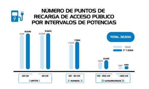 Los puntos de recarga de acceso público operativos crecen un 40% en el primer trimestre de 2024