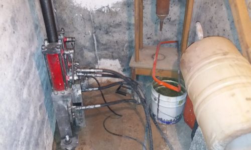 Esta complicada intervención se pone en marcha efectuando varias perforaciones de 64 mm de diámetro, que atraviesan verticalmente la zapata. A continuación, en estas perforaciones se introducen los micropilotes MP/60 por presión continua, evitando las excavaciones, empleando como contrapeso, la propia estructura, mediante punto de enganche para el pistón hidráulico con los adecuados pernos de anclaje. Los elementos que configuran el micropilote se introducen uno tras otro, uniéndolos entre sí con un manguito roscado macizo.