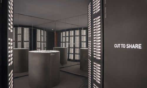 El espacio Arcos, una de las marcas de cuchillería más antiguas y prestigiosas, ha sido concebido por Culdesac como una instalación artística que reutiliza residuos del proceso de fabricación, transformándolos en una narrativa visual contemporánea. La propuesta es una metáfora de la filosofía de la marca: cortar es compartir. Desde los materiales que dan forma a los cuchillos hasta los momentos compartidos en torno a una mesa, el espacio cuenta una historia desde lo esencial. Flejes metálicos forman una celosía y los moldes, dispuestos en el suelo, conducen al centro de la instalación: el engranaje de Arcos, donde lo funcional y lo simbólico se equilibran. La iluminación de Simon acentúa las siluetas metálicas y refuerza el lenguaje visual del proyecto. Un homenaje a la cocina como espacio vital, donde se preparan, se comparten y se viven momentos. Porque para compartir, siempre hay que cortar.